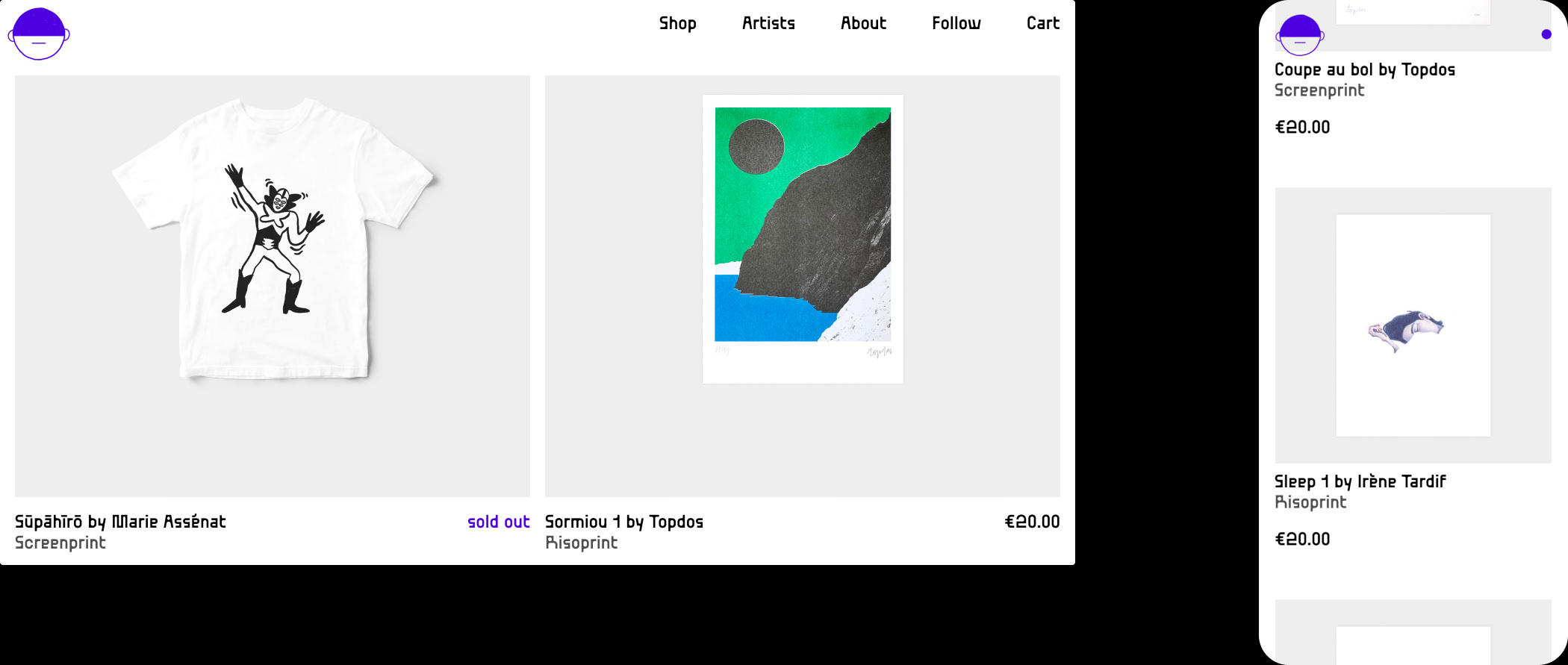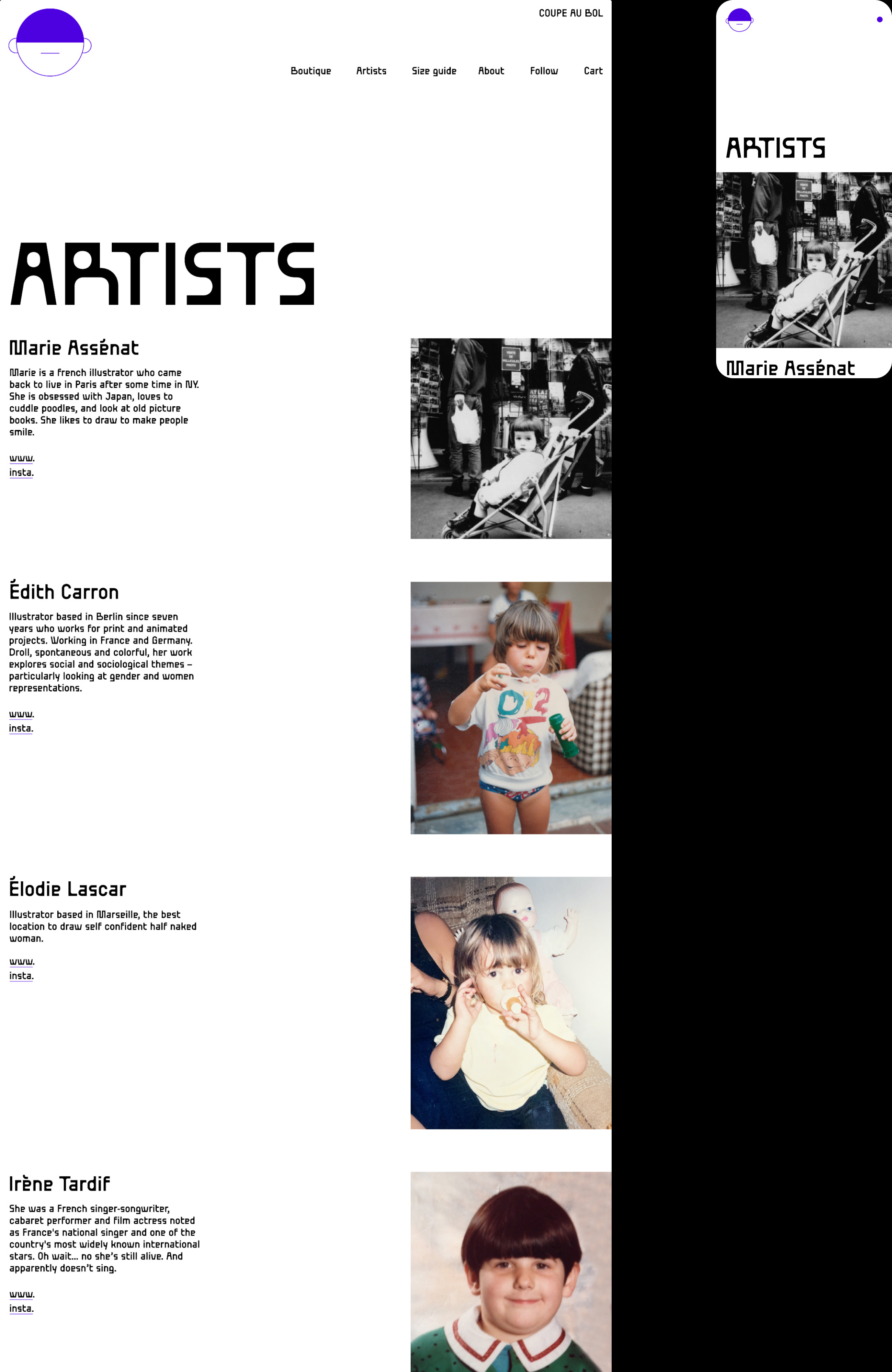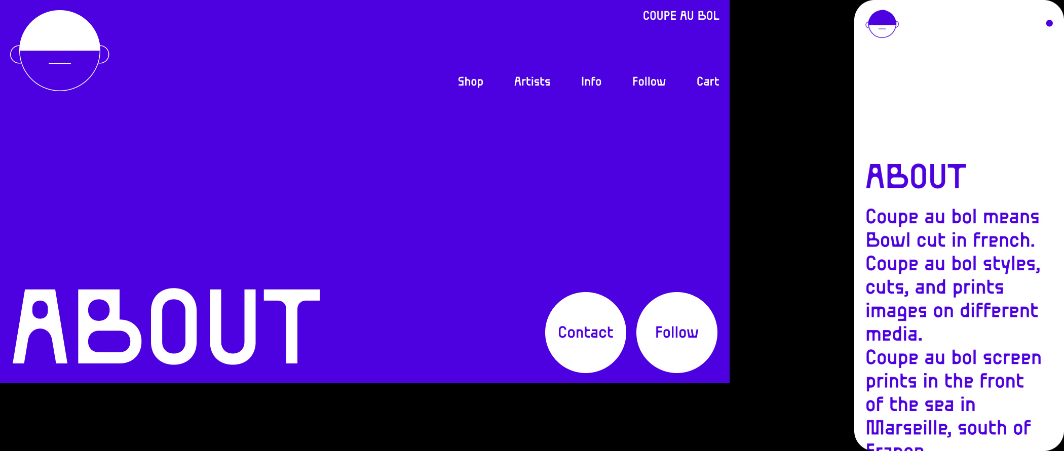Coupe au bol est un collectif basée à Marseille qui édite, imprime et vend des tirages d'artistes autour de l'image imprimée et de l'illustration. J'ai pu réalisé le logotype ainsi que le site web codé soigneusement par Irène Tardif.