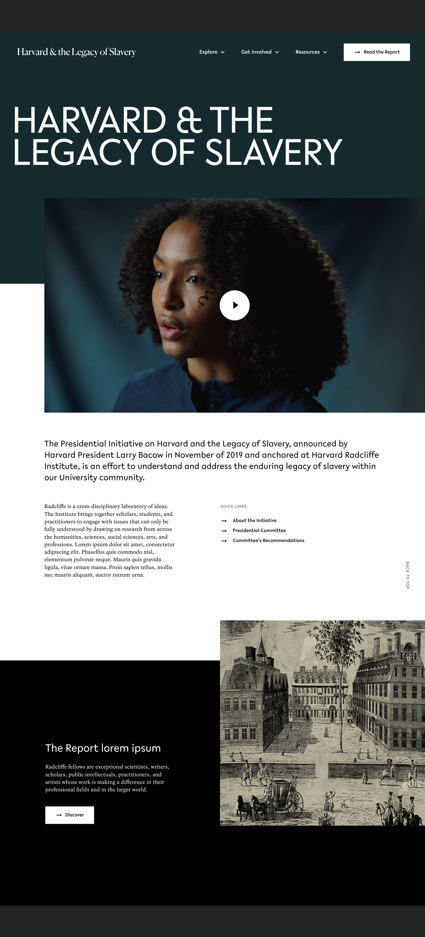 Le 26 avril 2022, le président de Harvard, Larry Bacow, a publié le rapport du comité sur Harvard et l'héritage de l'esclavage, a accepté l'intégralité des recommandations du comité et a annoncé un engagement historique de 100 millions de dollars pour financer leur mise en œuvre.