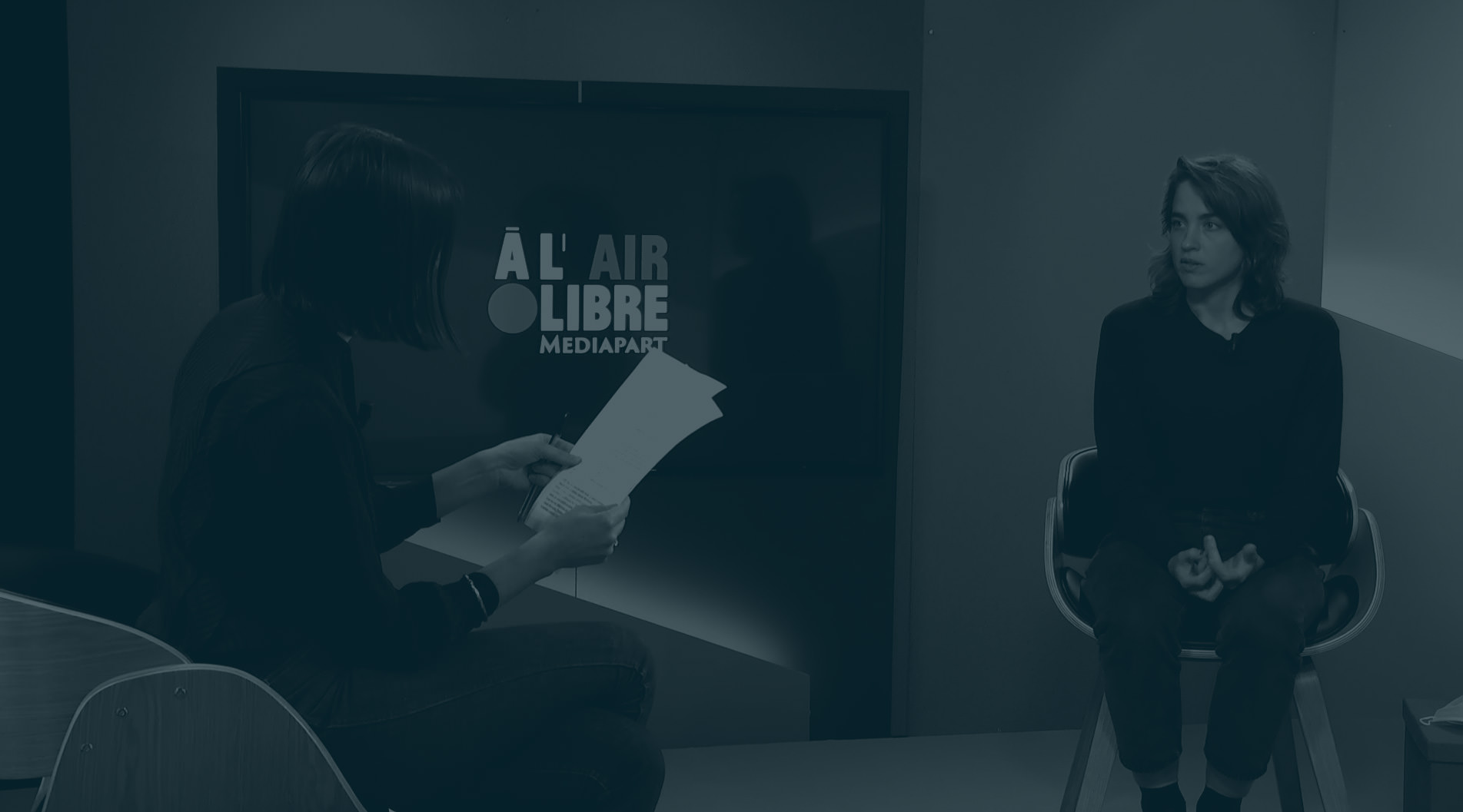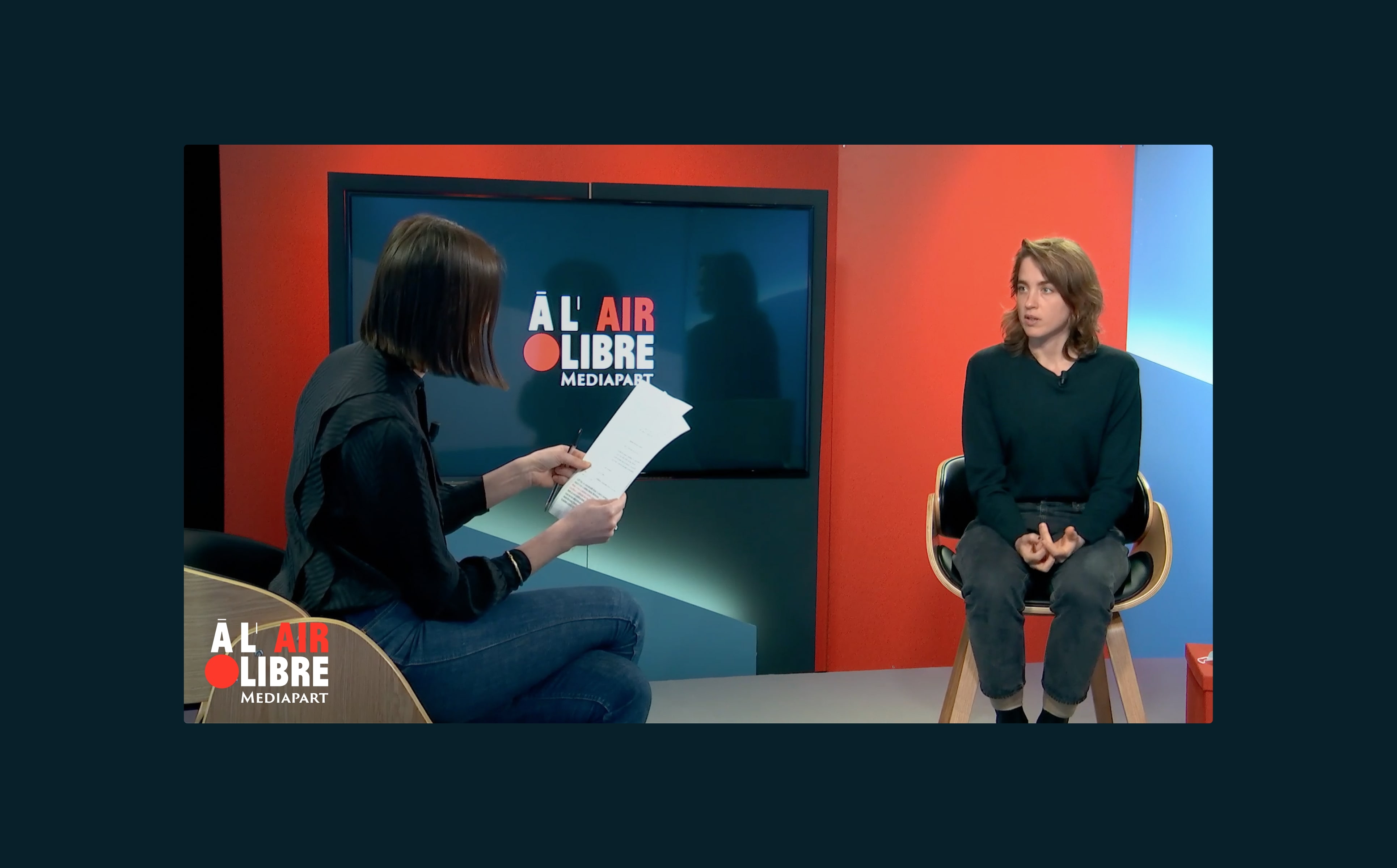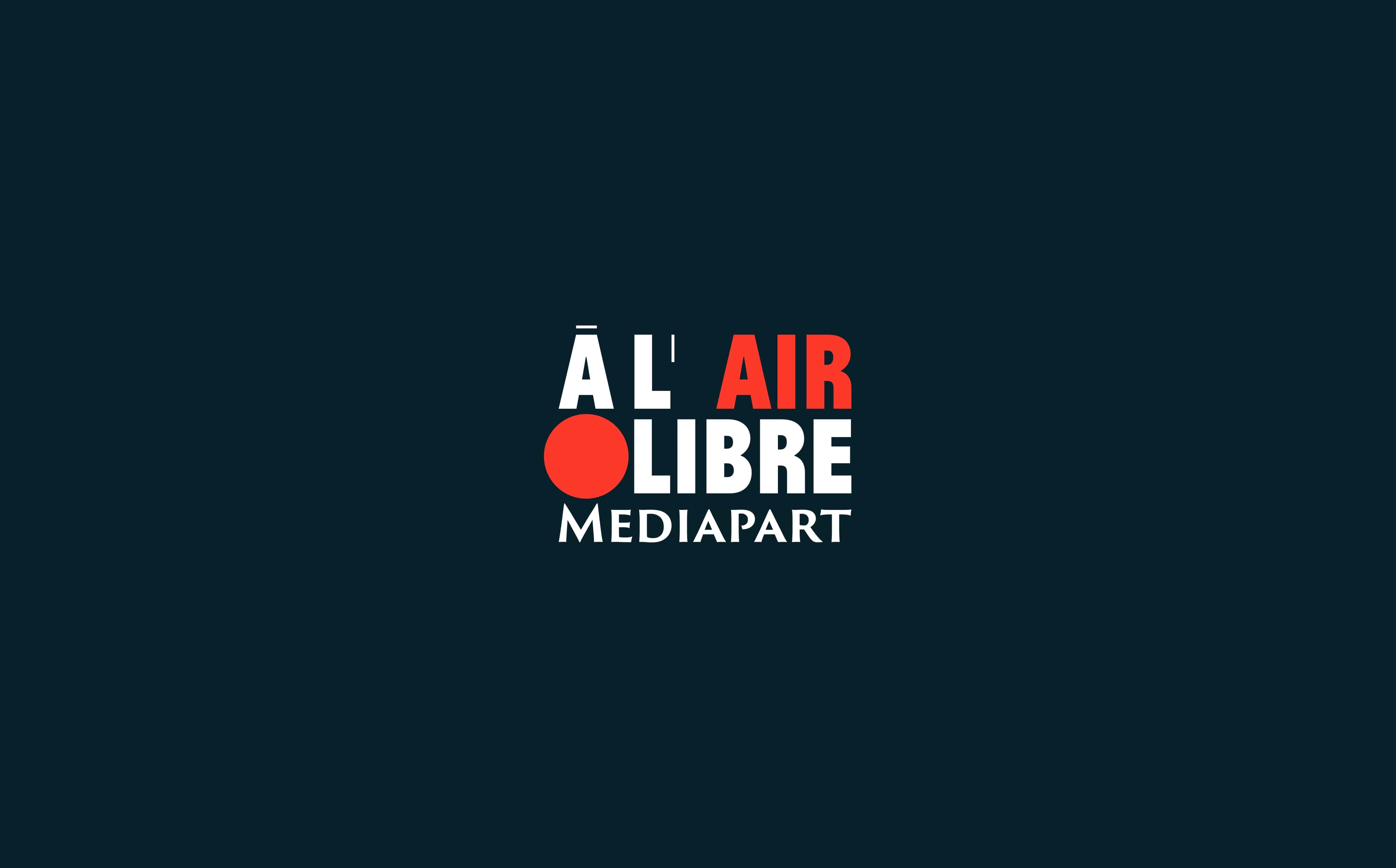 Identité visuelle de l’émission À l’air libre, l’émission de Mediapart. Création du logotype, réflexion avec l’équipe de l’émission : Valentine Oberti, Mathieu Magnaudeix et Christophe Gueugneau.