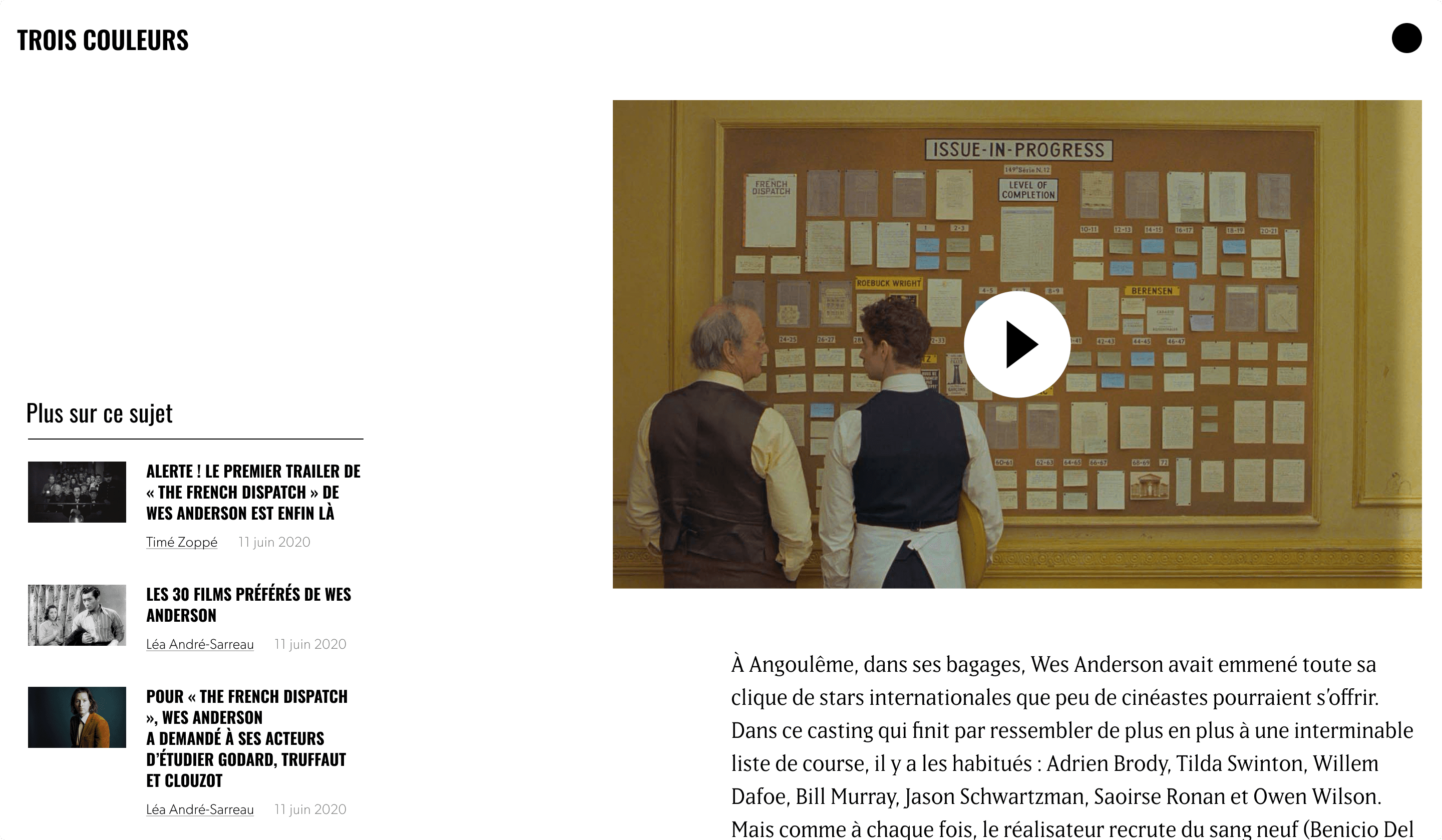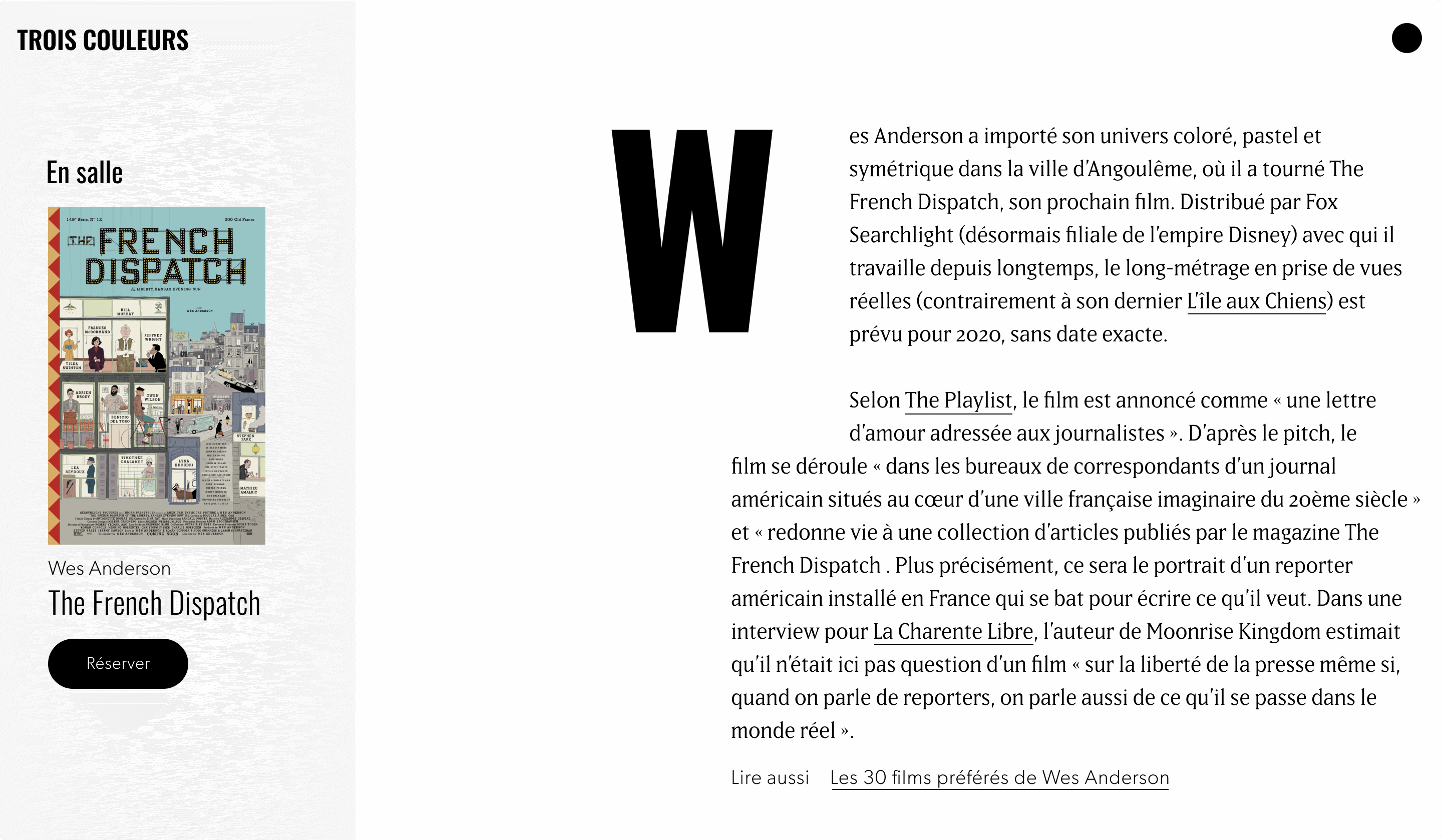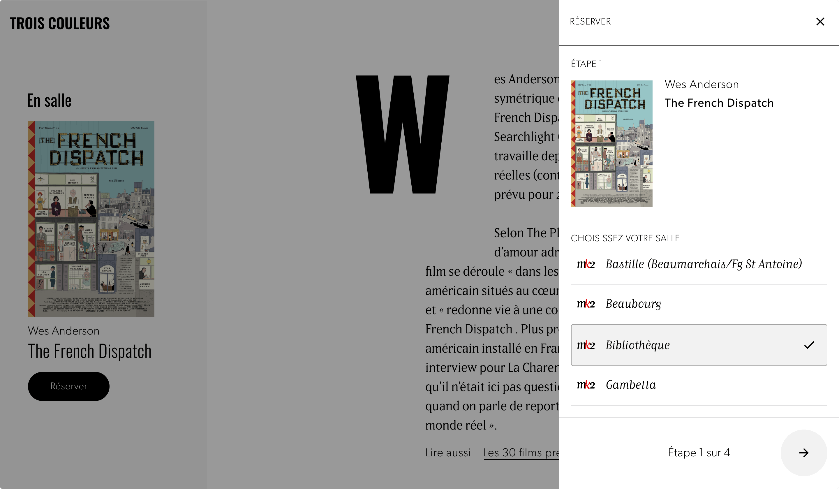 Direction artistique de l'écosystème MK2 qui comprend quatre espaces : la billeterie, mk2 curiosity, institute et le magazine Trois couleurs. Ce travail a été réalisé dans le cadre de l’appel d’offre lancé pendant l’été 2020 pour la refonte globale des sites. L’objectif était de travailler sur un design système homogène et de créer une navigation transverse entre l’offre cinématographique, VOD, évènementielle et éditoriale.